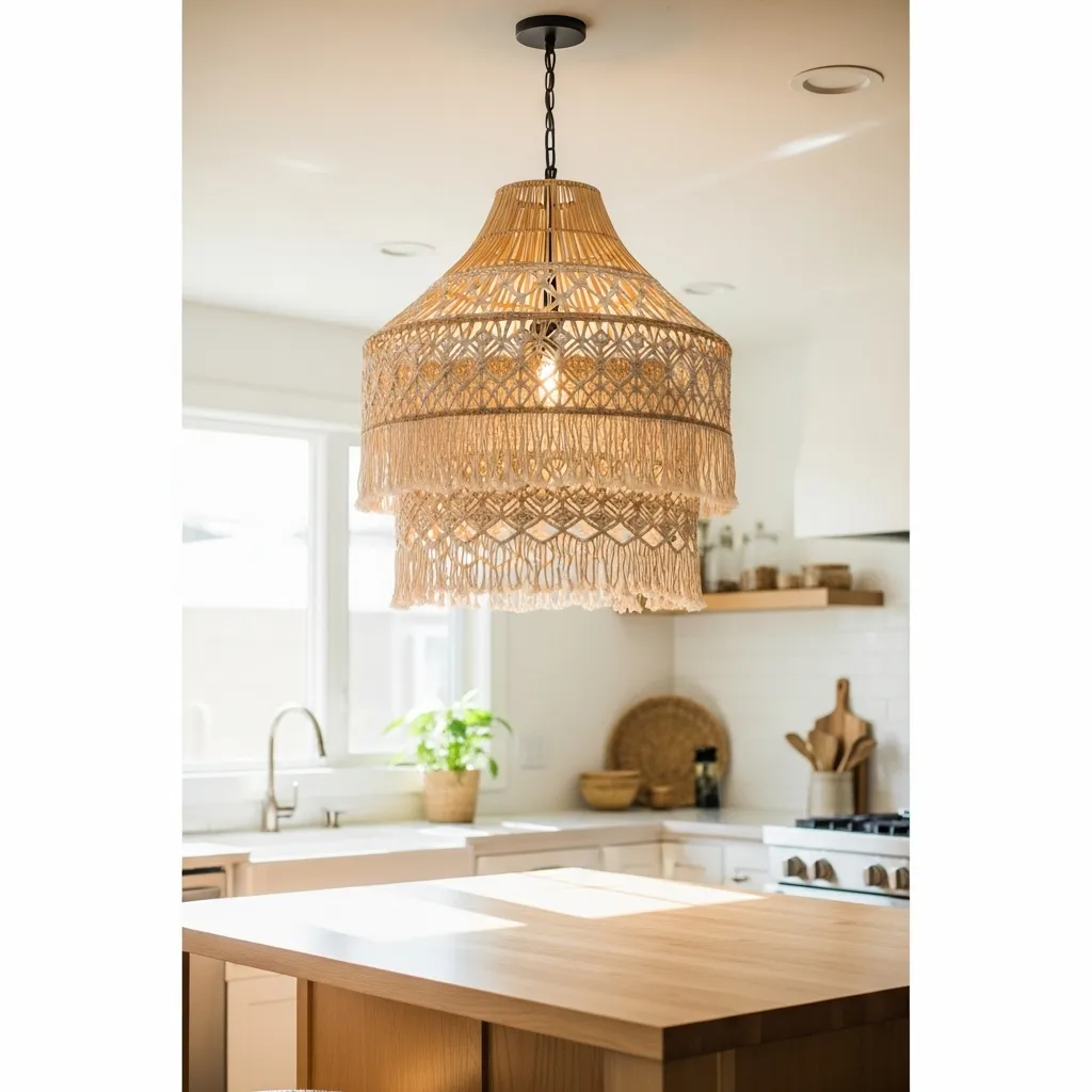 Lighting is jewelry for your kitchen. A single, stunning pendant light over the sink or island can define the whole space. I look for pieces with natural materials like rattan, woven fibers, or colored glass.