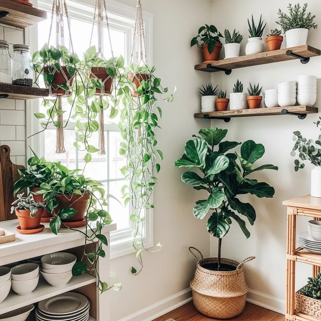 Greenery is non-negotiable for a lively, cozy space. I use a mix of trailing plants like pothos on top of cabinets, a sturdy snake plant in a corner, and fresh herbs in pretty pots on the windowsill.