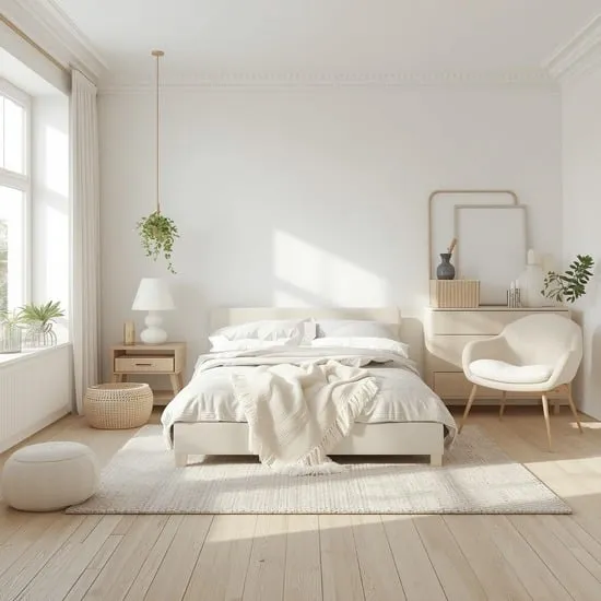 Think light wood floors, clean lines, and plenty of white space. The clutter-free aesthetic is calming and promotes better sleep. Add warmth with textiles: a chunky knit blanket, a sheepskin rug, and lots of soft, neutral pillows.