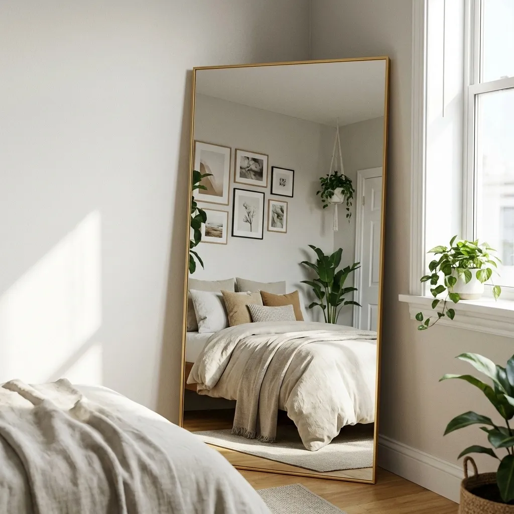 Every luxury space needs a great mirror. I leaned a large, framed floor mirror against a wall. It instantly makes the room feel bigger and brighter by reflecting light.