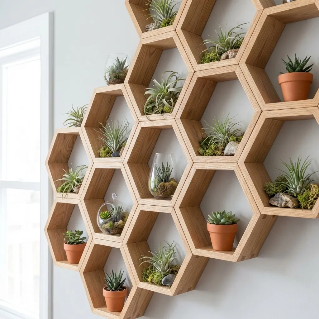 I like to treat each hexagon as its own tiny stage. Place a single, striking plant in each one—think a fuzzy succulent, a vibrant air plant, or a delicate fern. The negative space around each pot makes the entire display feel curated and intentional.