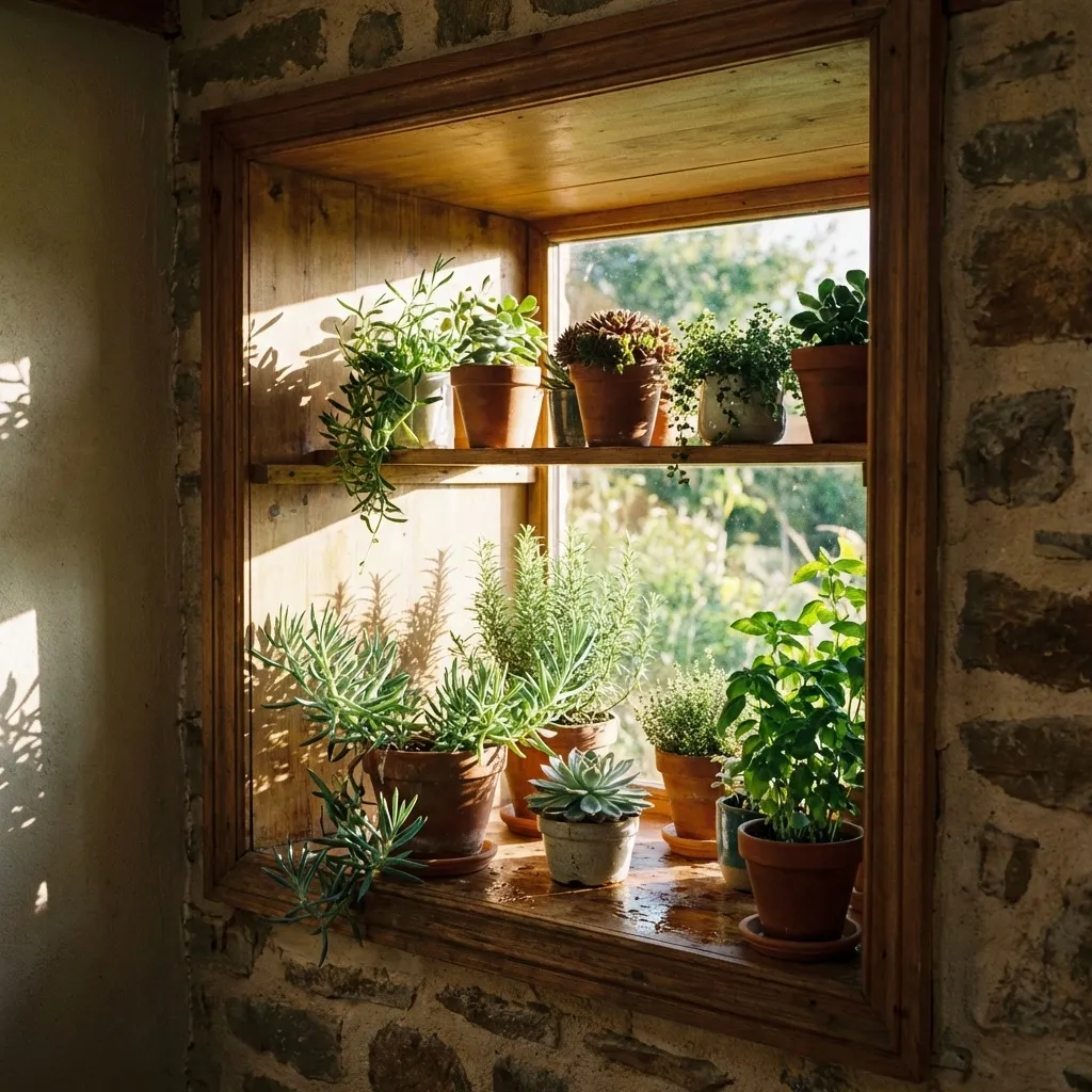 Nothing says cozy like the warm, textured look of reclaimed wood. I often source old barn wood or pallet planks to create simple, deep ledges. The natural imperfections in the wood complement the organic shapes of the plants perfectly.