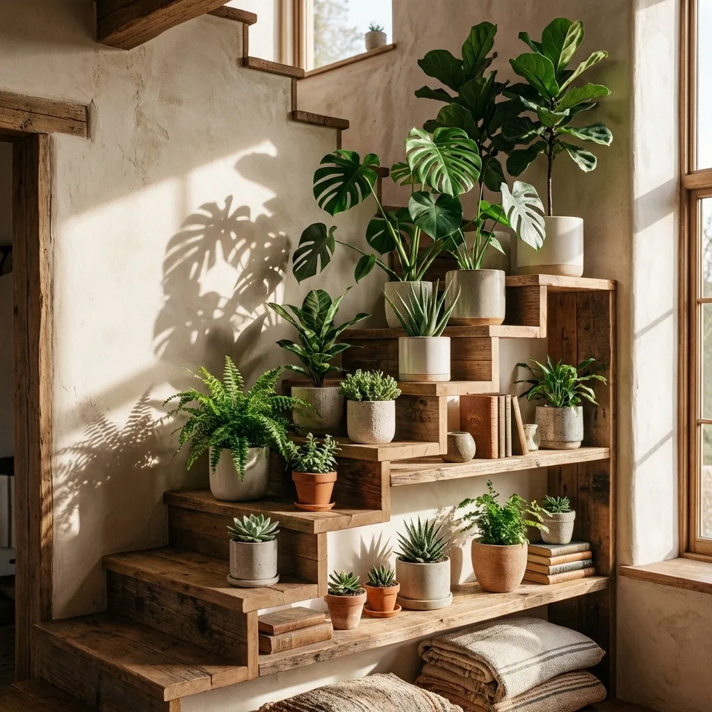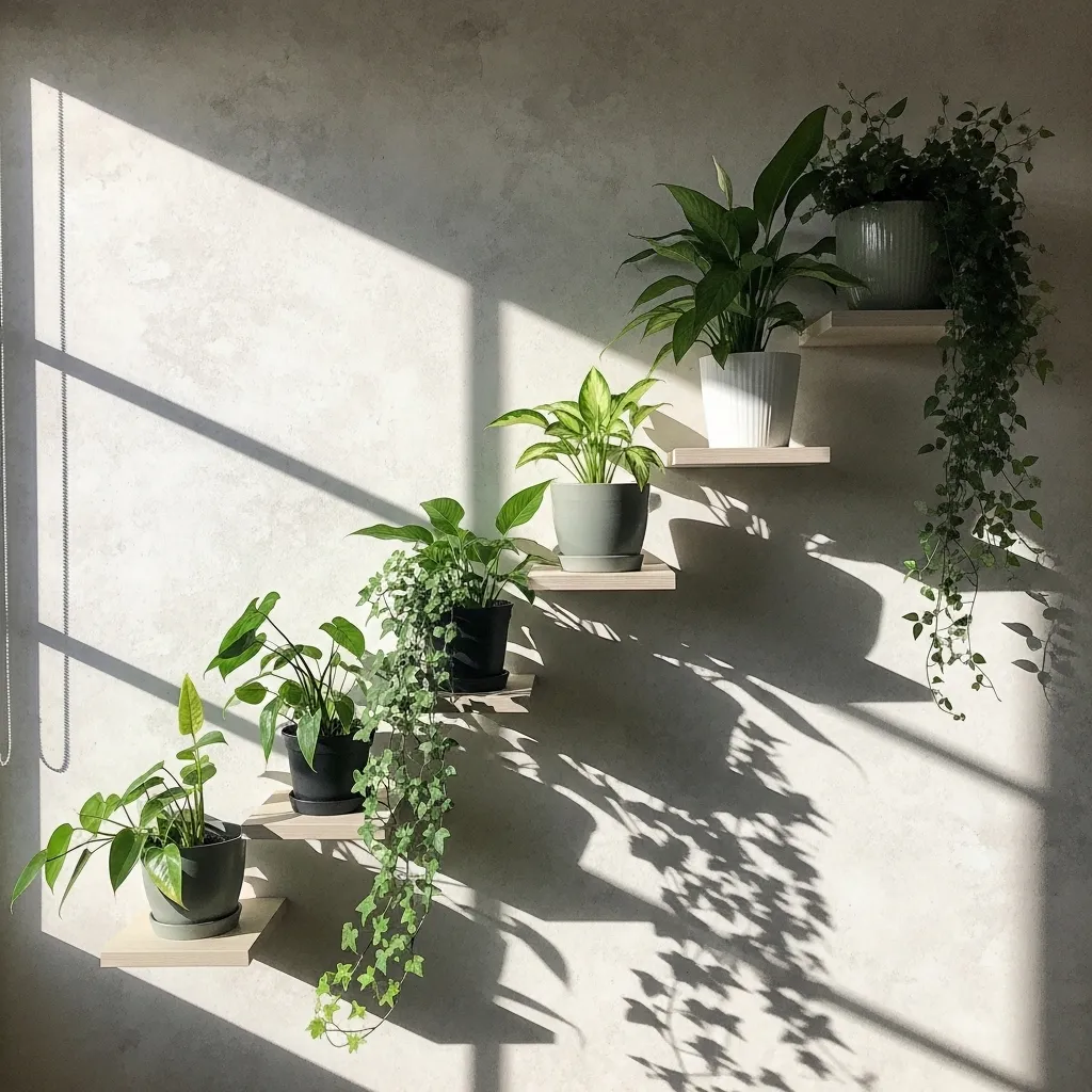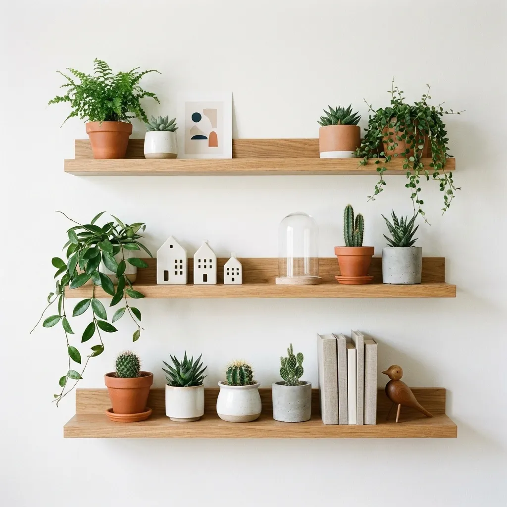 For a dynamic, modern look, I love installing staggered floating shelves in a ladder formation. This design creates beautiful asymmetry and allows plants of different heights to shine without competing for space.