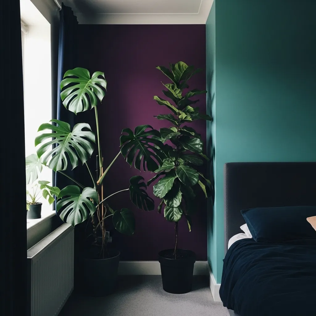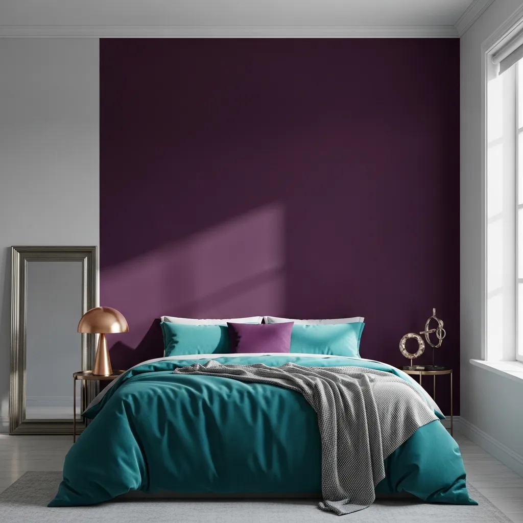 Start with one powerful focal point. Paint the wall behind your bed a deep, matte plum or eggplant. This instantly grounds the room. Then, bring in teal through your bedding—think a velvet duvet cover or silky pillows. The teal pops beautifully against the dark purple, creating a layered look that feels intentional, not overwhelming.
