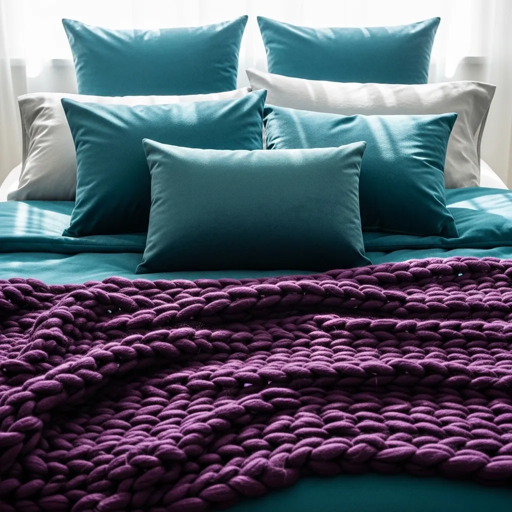 This idea is all about touch. Layer different textures in your core colors to create incredible depth. A teal velvet headboard feels lush against a matte purple wall. Add a chunky knit throw in a charcoal gray and silk pillowcases in a lighter lavender for contrast.