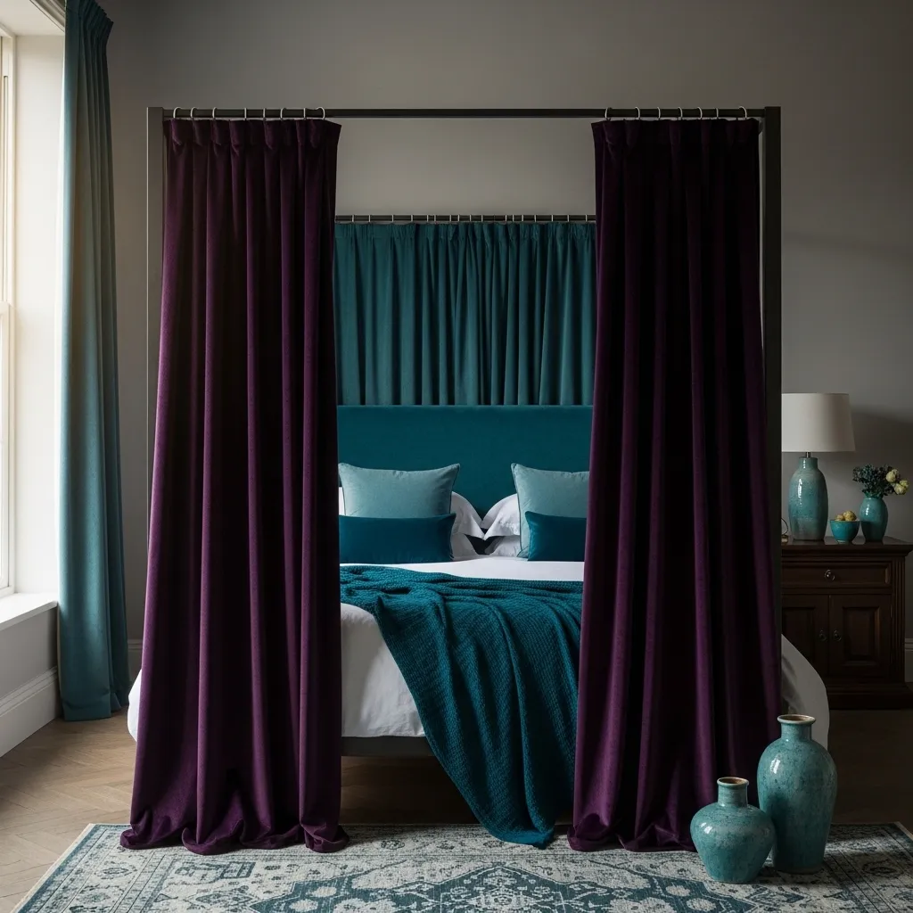 I’ve always been drawn to bedrooms that feel like a personal sanctuary, a place that’s both dramatic and deeply soothing. Lately, I’m completely obsessed with the pairing of dark purple and teal. It sounds bold, I know, but trust me—when done right, it creates a space that’s rich, regal, and incredibly cozy. It’s like bringing the depth of a twilight sky together with the calm of a deep lagoon.