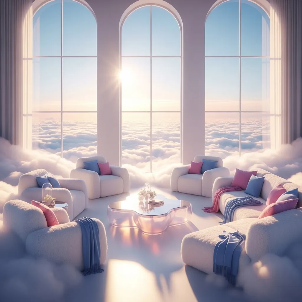 The ultimate soft, dreamy escape. This aesthetic is all about weightlessness, soft light, and serene comfort. It feels like floating.