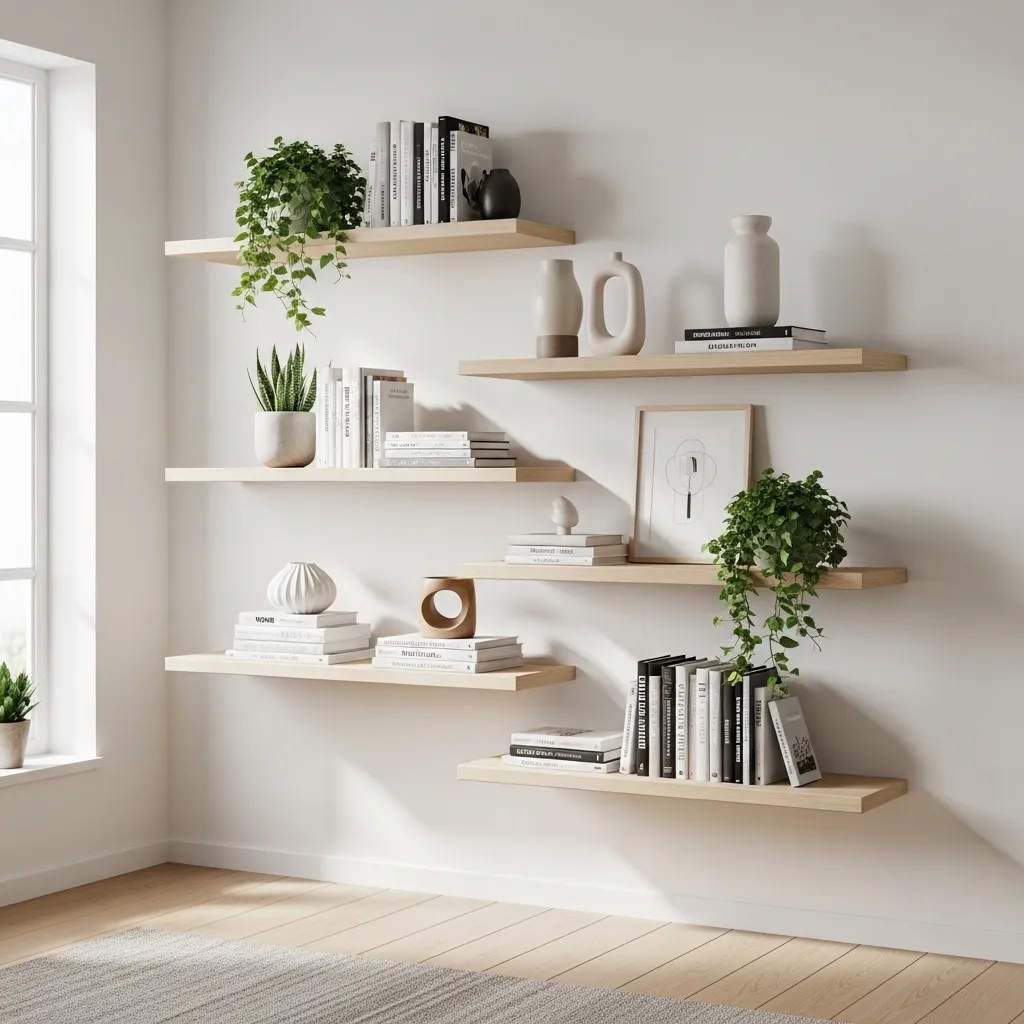 6. Install Floating Shelves for Display