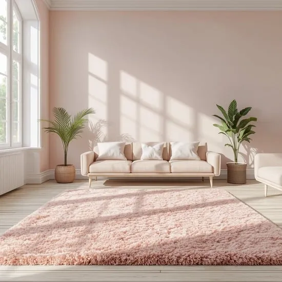 A rug is a fantastic way to anchor your seating area and introduce color. A muted pink, especially in a patterned or textured style like a Beni Ourain or a flat-weave, adds warmth underfoot.