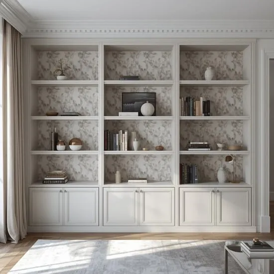 Make your floating shelves or built-ins pop. Apply wallpaper to the back wall of your bookshelf. It makes your books and decor stand out and adds a layer of depth and interest to the whole wall.