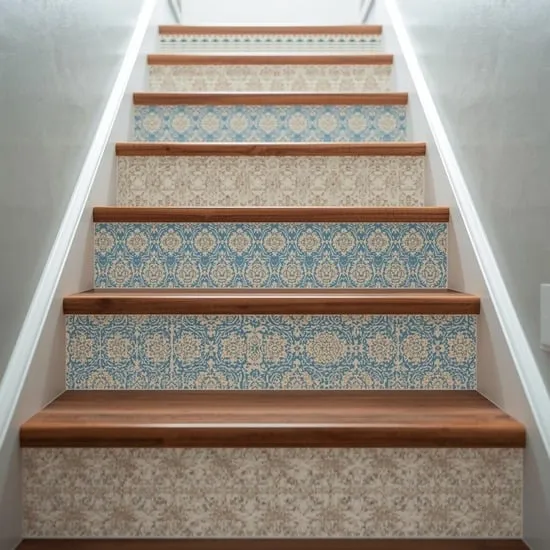 Use a durable, scrubbable pattern. You can go for a cohesive look with the same print on each step or mix and match complementary patterns for a truly unique staircase.