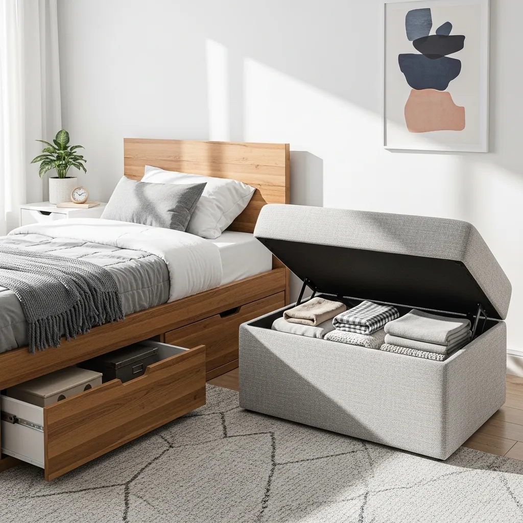 I’ve even used a hollow bench for seating that opens up for blankets. When everything has a designated, hidden home, surfaces stay clear and the room instantly feels more spacious.