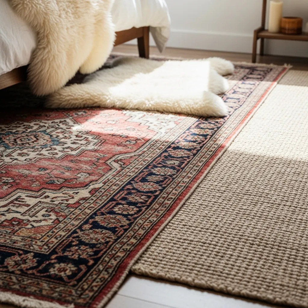 This mix of plush and natural fibers adds incredible warmth and visual interest. It feels luxurious to step onto, and each texture tells a different part of your room’s story, from the gothic elegance to the global boho vibe.