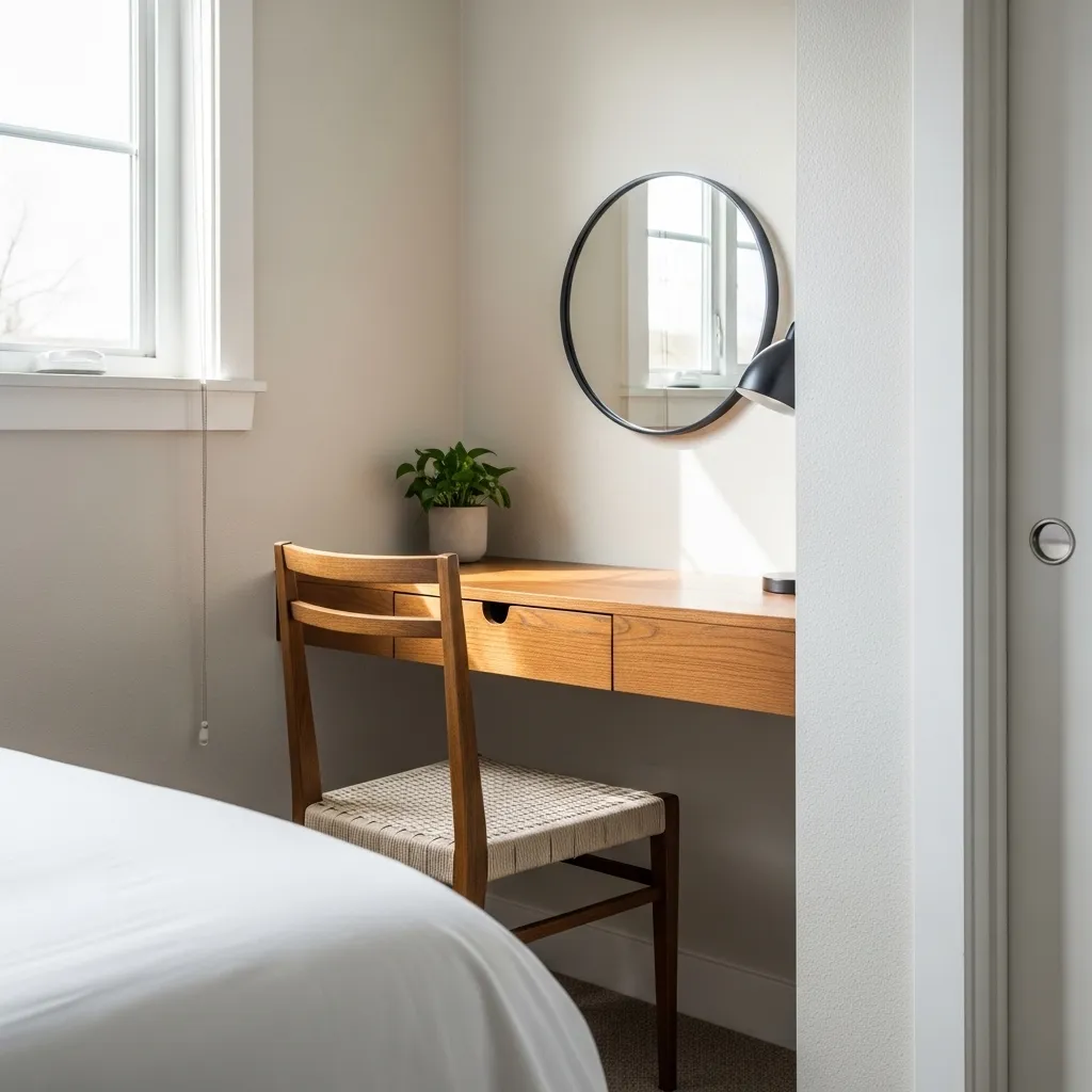 Corners are often wasted space. Tucking a small, triangular corner desk into an unused nook gave me a dedicated spot for my laptop without intruding on the room. The same goes for a corner dresser or shelving unit.