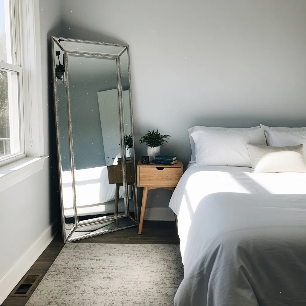 Mirrors are the oldest trick in the book for a reason. They reflect light and the room itself, creating an illusion of depth. I leaned a large, full-length mirror against a wall, and it instantly doubled the visual space.
