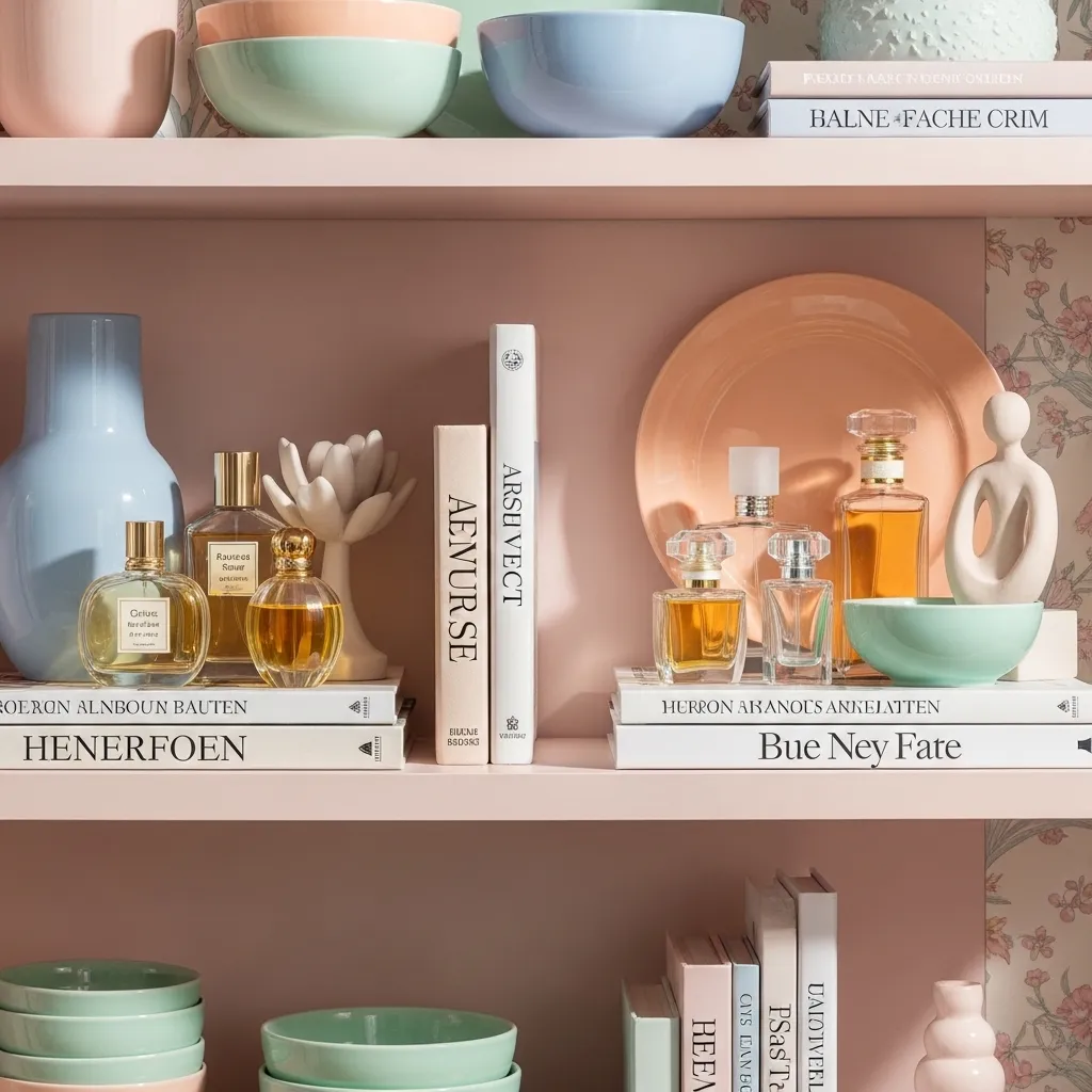 Group items together for impact. A lineup of clear bottles on a mirrored tray, or a set of pastel mugs on a shelf, becomes intentional art. It shows off what you love.