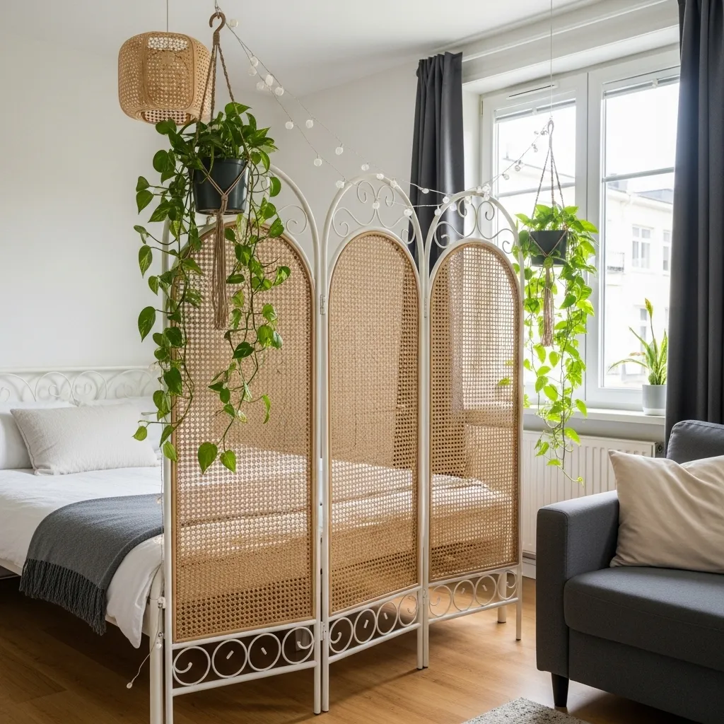 You can also use a tall, open bookshelf or even hang curtains from the ceiling. This helps separate your sleeping area from your living space, adding structure and a sense of privacy without closing things in.
