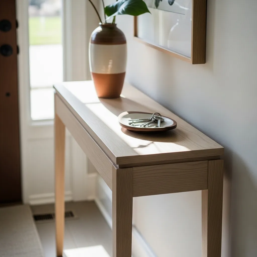 For the truly tiny entry, floating shelves are your best friend. They provide all the utility of a table but keep the floor completely clear. Install two or three in a staggered arrangement for visual interest.