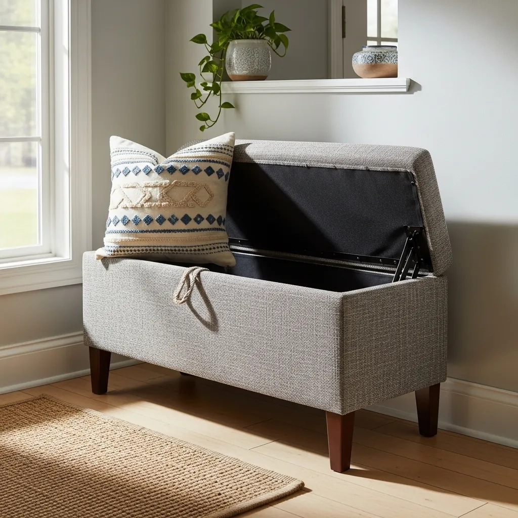 If you have even a sliver of wall space, a storage bench is a game-changer. It offers a place to sit while putting on shoes, and the lift-up seat hides all the clutter—think seasonal scarves, dog leashes, or reusable shopping bags.