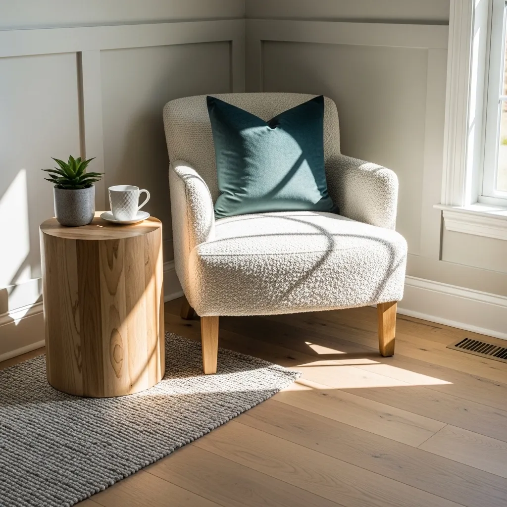 Drape a soft blanket over the arm. This creates a charming, inviting moment that suggests you can pause and breathe here, even if it’s just for a minute to tie a shoe.