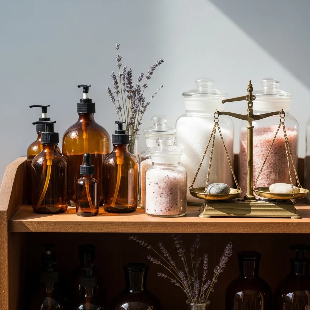 I look for items with interesting labels or typography. This theme tells a story and makes your bathroom feel like a curated, old-world chemist’s shop.