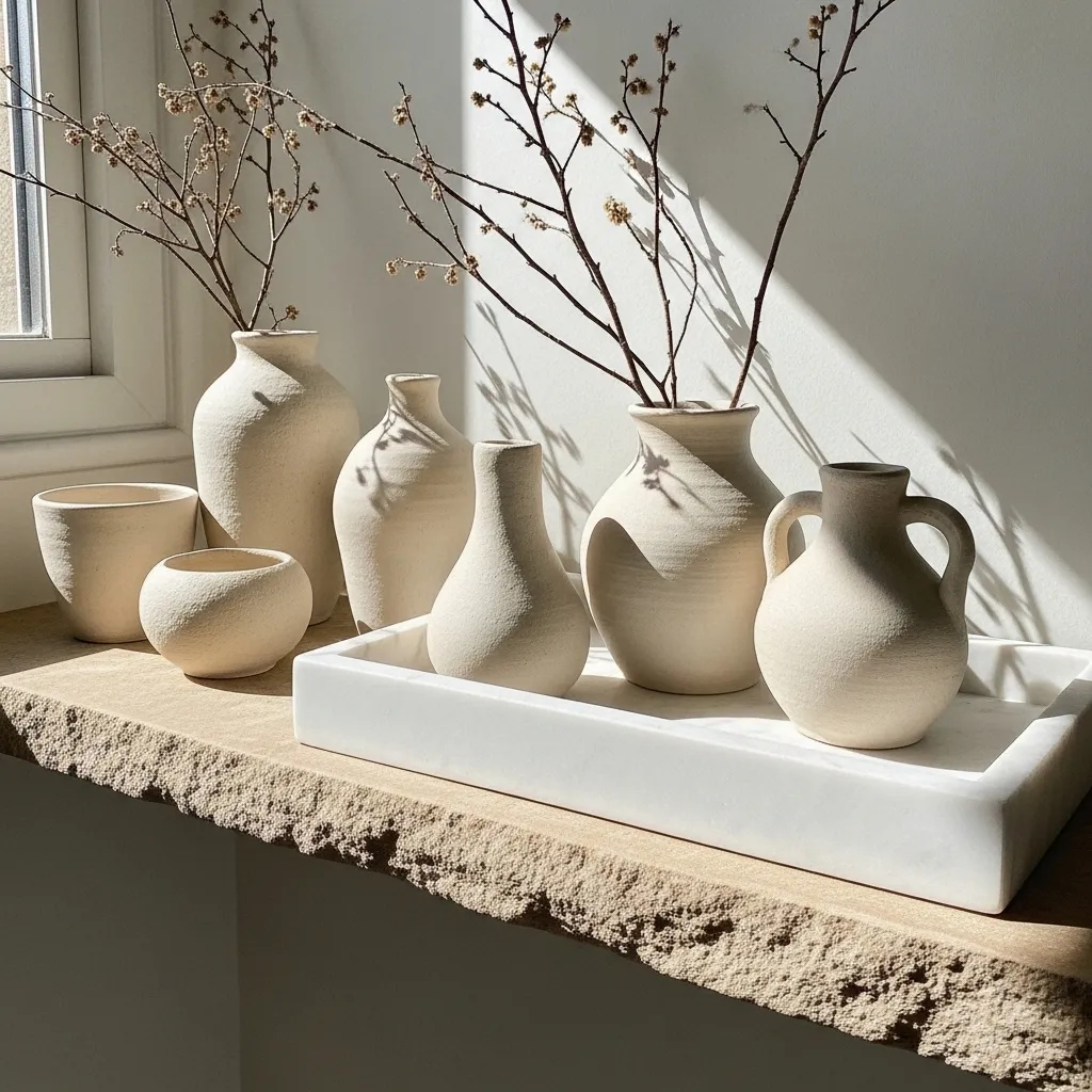 Embrace the trend of organic shapes. Use travertine bookends, a rough clay vase, or marble soap dishes. The raw, untouched feel of the materials brings serenity.