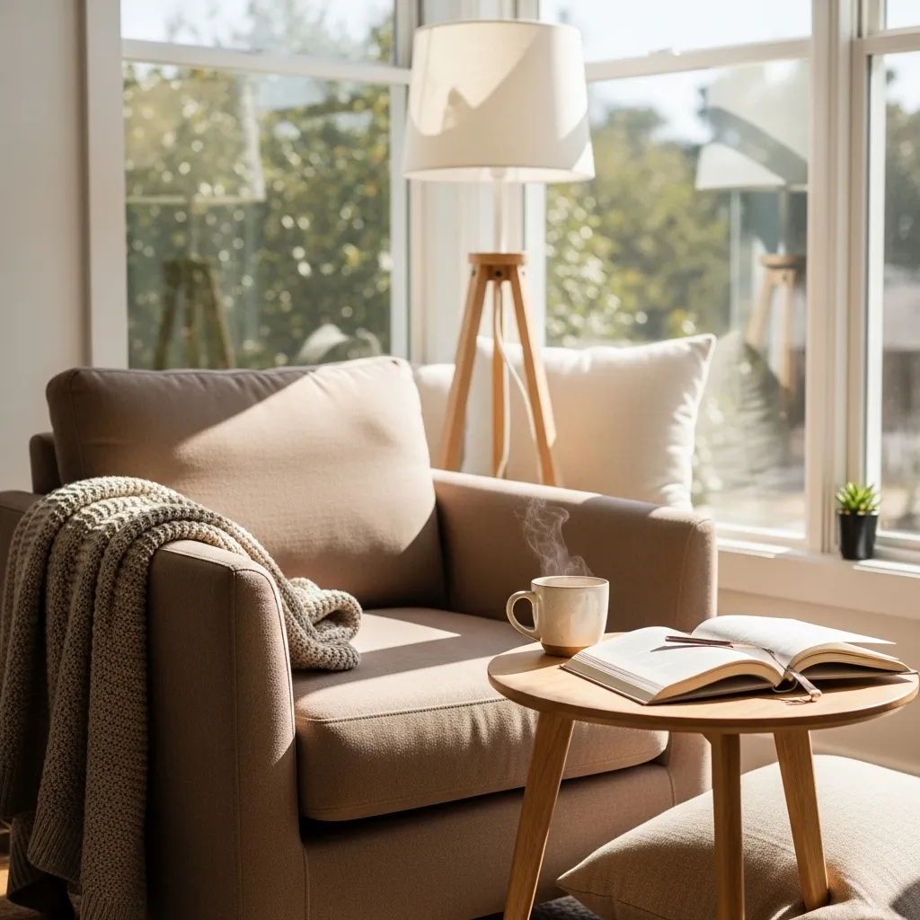 Every cozy home needs a dedicated spot to get lost in a book. You don’t need a bay window—just a corner. I place a comfortable armchair there, the comfier the better. Add a small side table for your tea and a floor lamp that arches over your shoulder for perfect light.