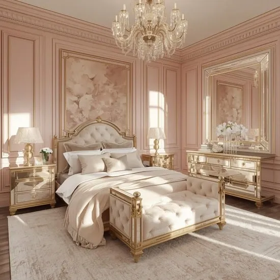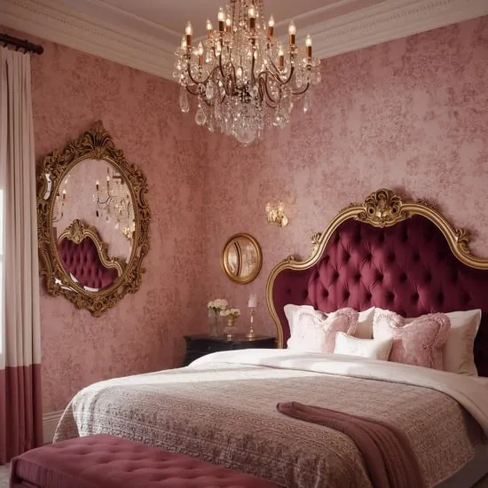 Channel old-world charm with a pink backdrop. Look for ornate, gilded mirrors, crystal knobs on your dresser, and a tufted pink headboard. Floral patterns in your curtains or an antique rug add to the vibe.