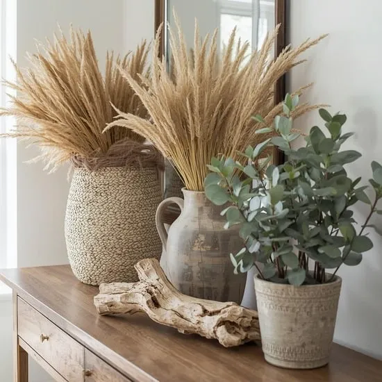 To keep the look from feeling too precious, bring in natural materials. Woven seagrass baskets, a jute rug, or a simple wooden bowl add earthy warmth.