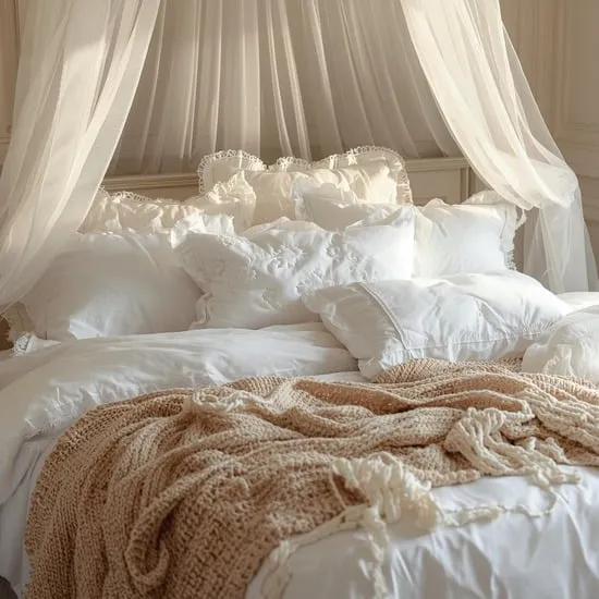 Texture is what makes shabby chic feel so cozy and tactile. I layer it everywhere, starting with bedding and windows.