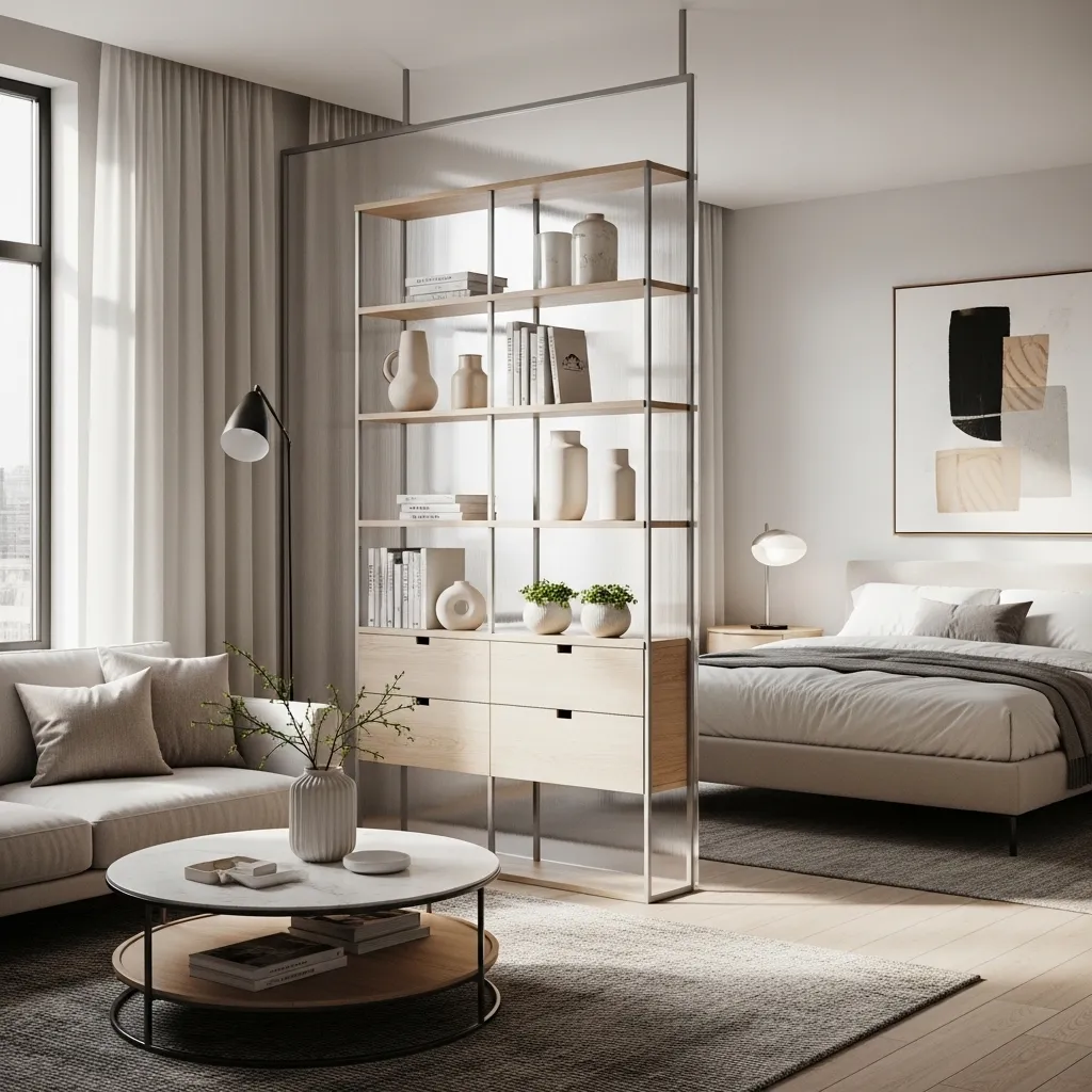 Other great options include a stylish folding screen, a curtain hung from the ceiling, or even a large area rug to anchor a specific zone. This simple trick instantly makes the space feel more organized and purposeful.
