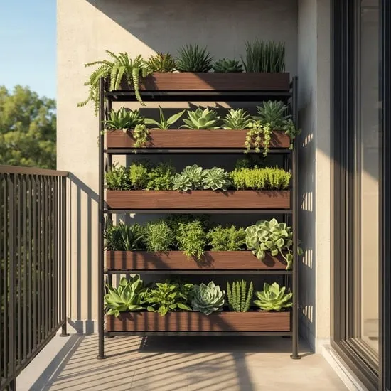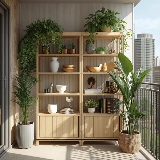 It becomes a functional art piece and a visual barrier. This idea is perfect for the balcony that also needs to serve as a storage and display area.