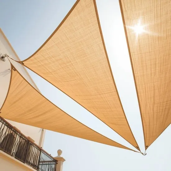 Sail shades aren’t just for pools. A triangular or rectangular shade cloth mounted at an angle can block the view from apartments across the way. They provide sun protection and a sense of enclosure.