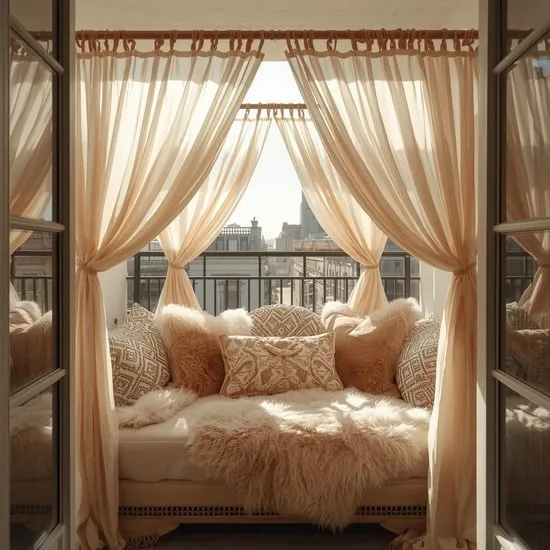 For instant romance and flexibility, outdoor curtains are a game-changer. Hang them from a simple rod or wire along the side of your balcony. You can tie them back on sunny days or let them billow softly for full coverage.