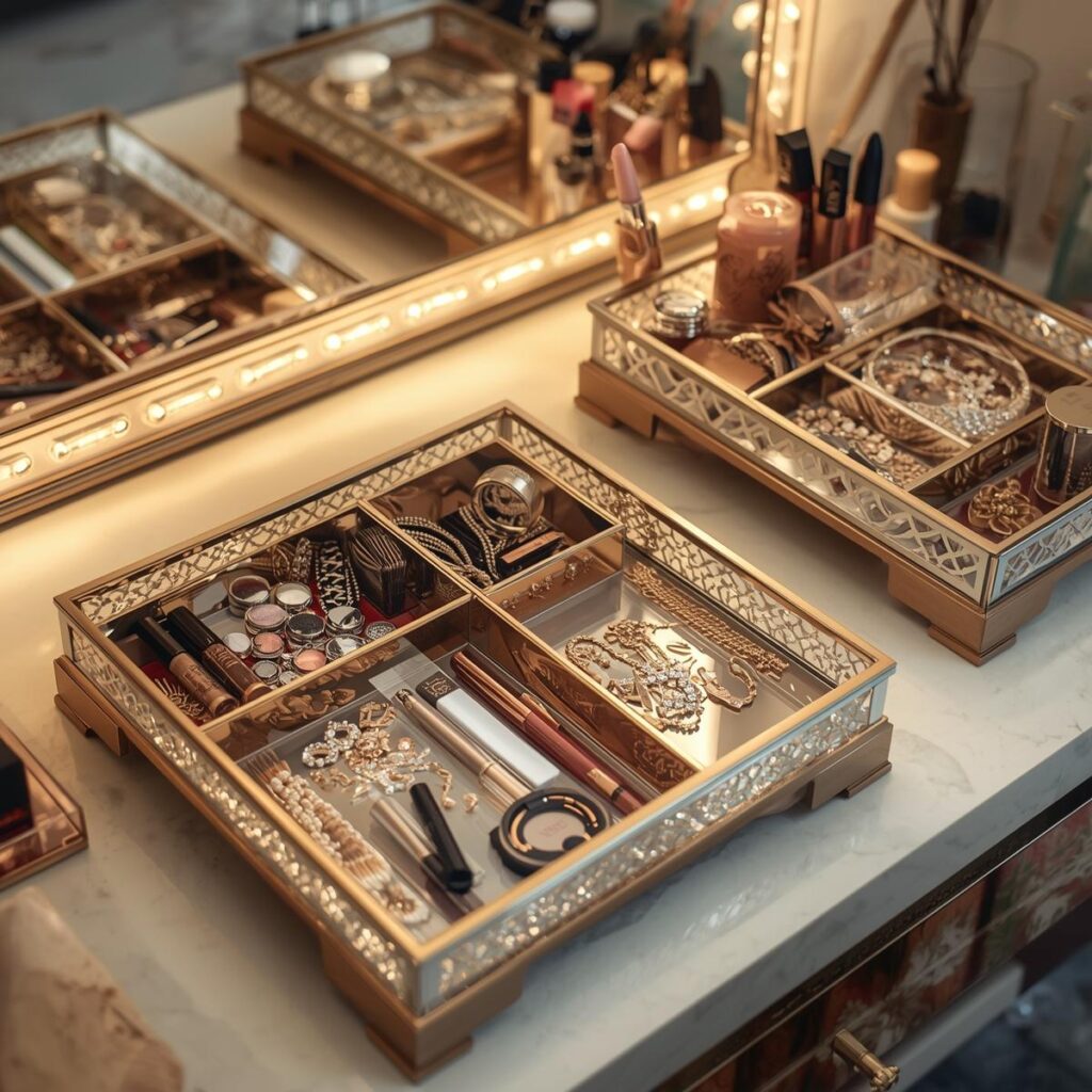 Trays helped me organize makeup and jewelry neatly.