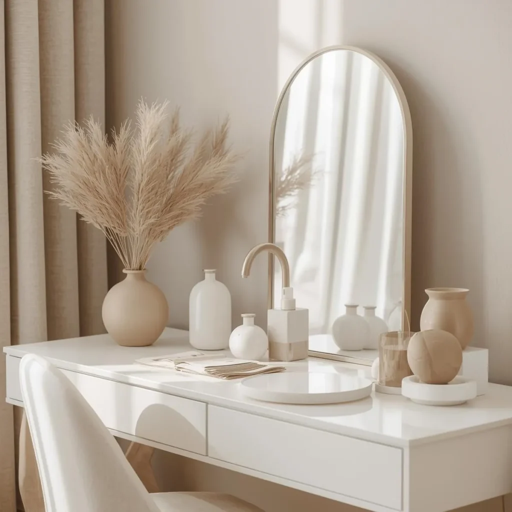 Soft neutrals made my dressing table feel peaceful.