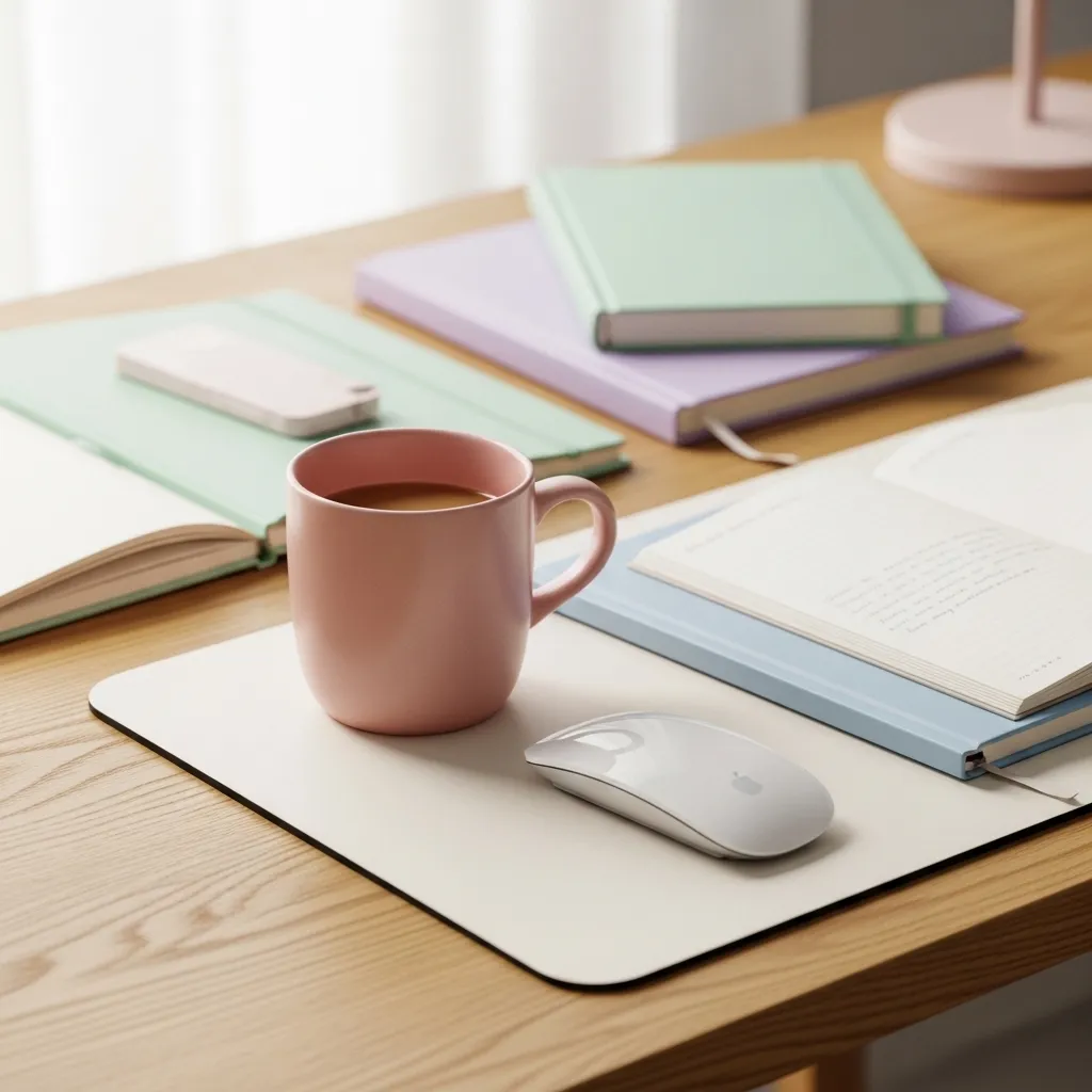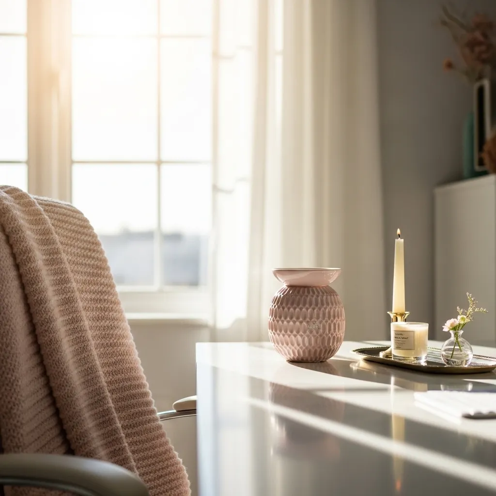 The final sensory detail! A great-smelling office can boost your mood and focus. Choose a chic ceramic diffuser with a calming scent like lavender or eucalyptus. Or light a scented candle in a pretty jar (safely, of course!).
