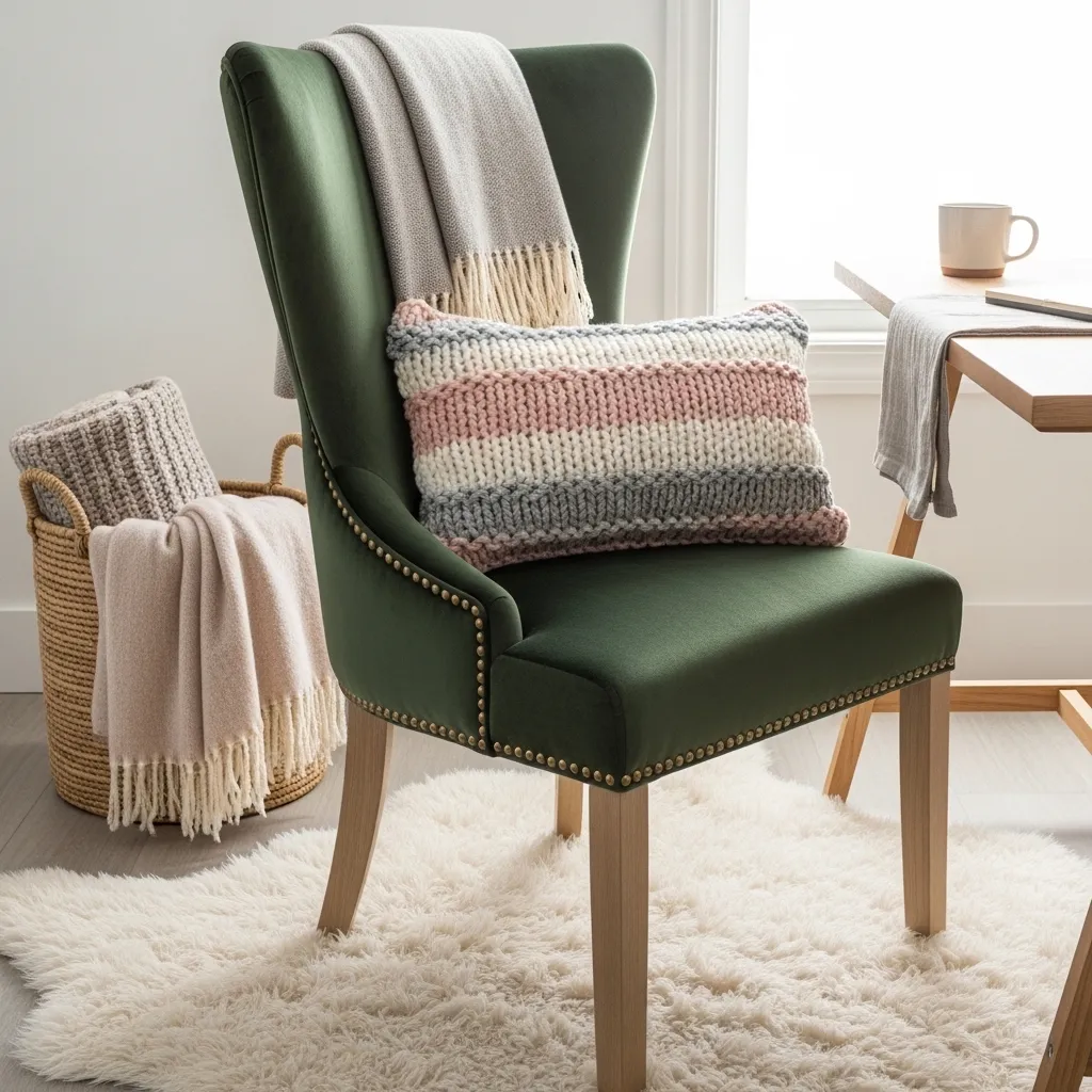 If your chair is more practical than pretty, a stylish throw blanket draped over the back can instantly soften its look. Comfort meets couture.