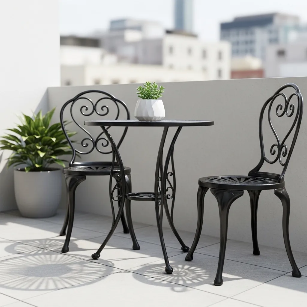 A full-sized dining set can overwhelm a small patio. A classic bistro set (a small table with two chairs) is the perfect scale. I found a foldable metal set that tucks right against the wall when I need more floor space.