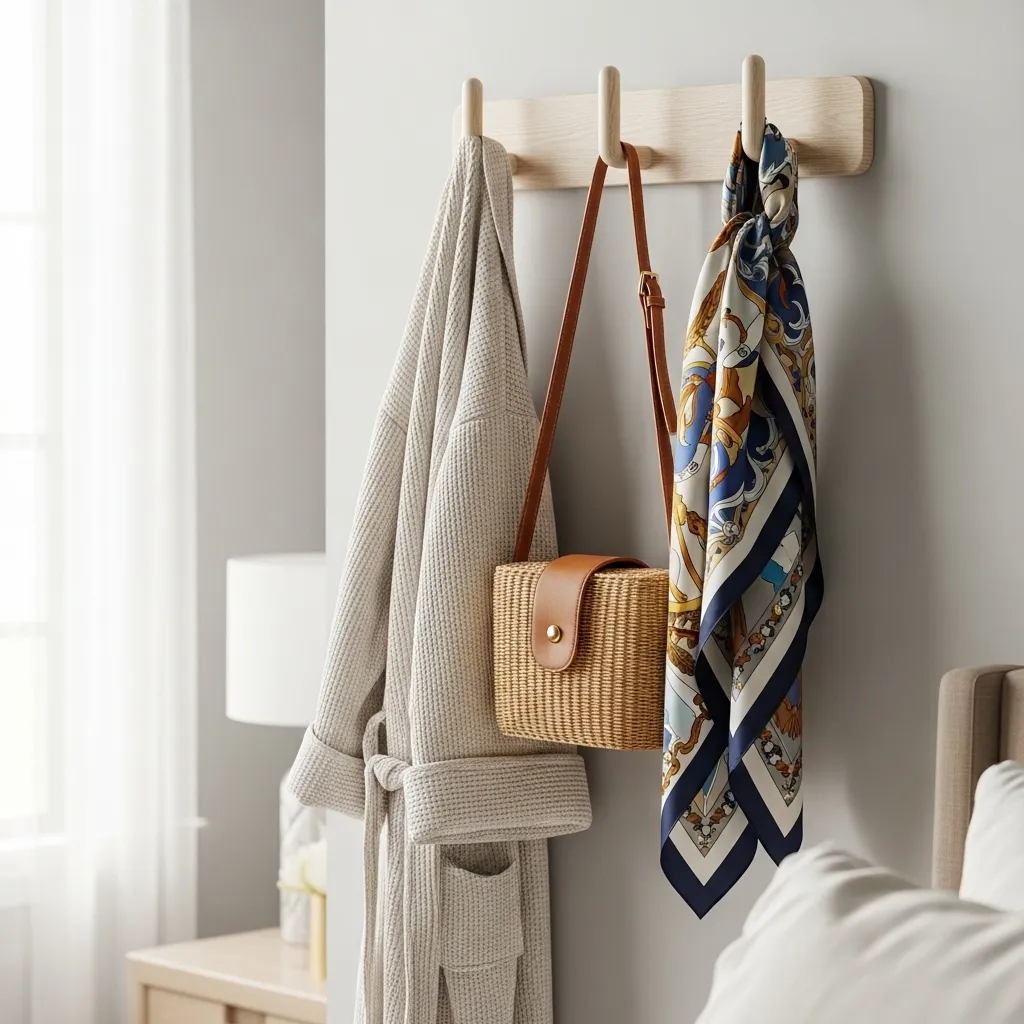 I created a tiny launchpad on my bedroom door or a nearby hook. It holds my go-to bag, a scarf, and my keys.