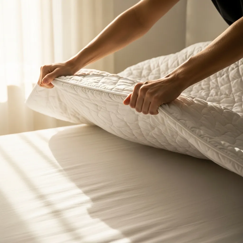 I use a duvet with a washable cover instead of a top sheet and multiple blankets. In the morning, I just shake the duvet, fluff the pillows, and I’m done. It takes less than a minute but has a massive psychological payoff.