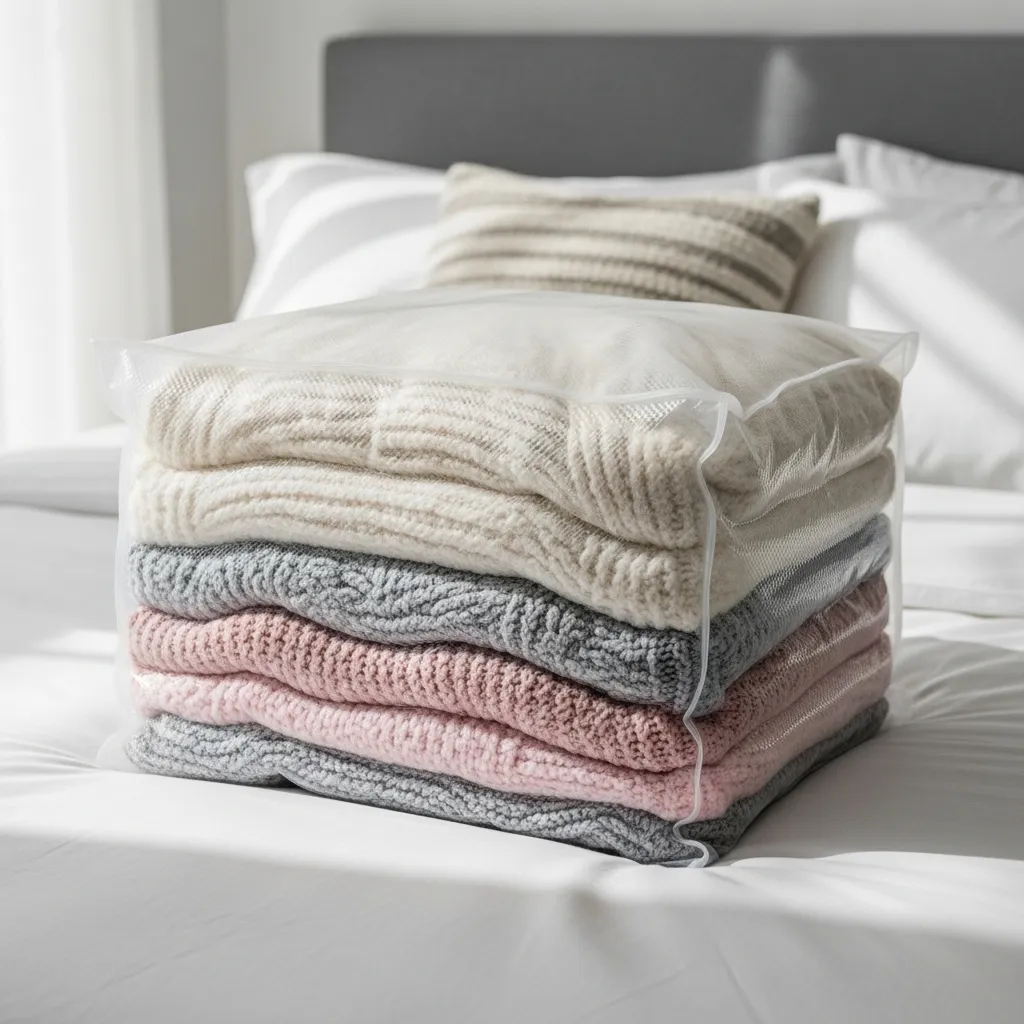For bulky winter sweaters or heavy blankets, vacuum-seal bags are a space-saving miracle. I pack away my off-season items in these bags and store them on a high shelf or under the bed.