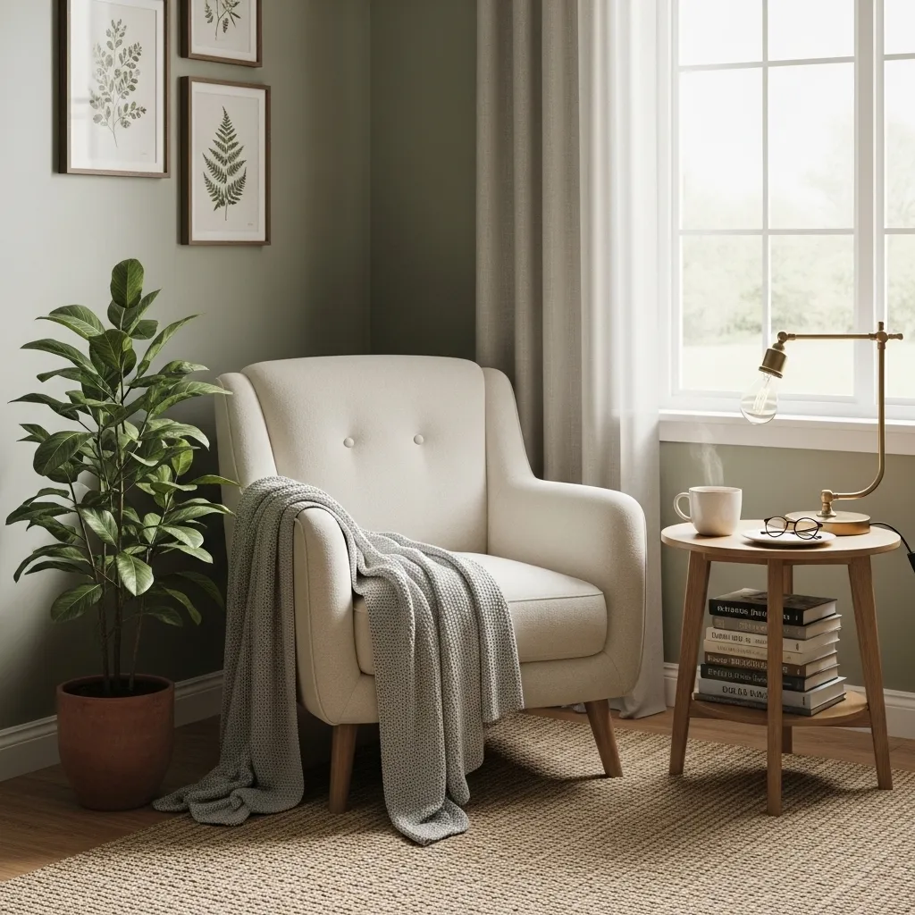 Who says an office has to be all desk? I carved out one corner of my room for a comfy armchair, a small side table, and a floor lamp. This is my “thinking corner” for reading briefs, brainstorming, or taking a screen break.