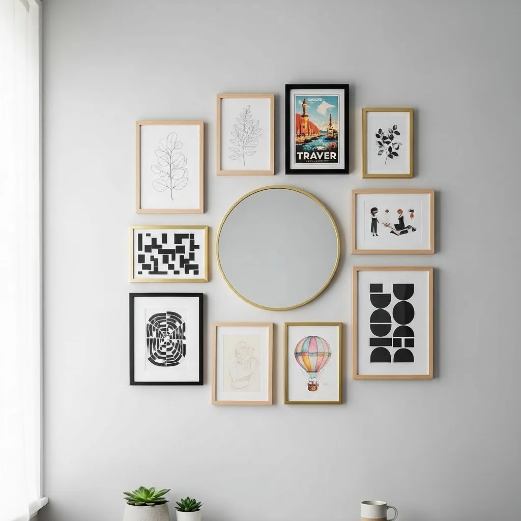 I turned the wall above my desk into a personal inspiration gallery. It’s a mix of framed art prints, motivational quotes in pretty fonts, a small mirror, and maybe a tiny shelf for a trinket.