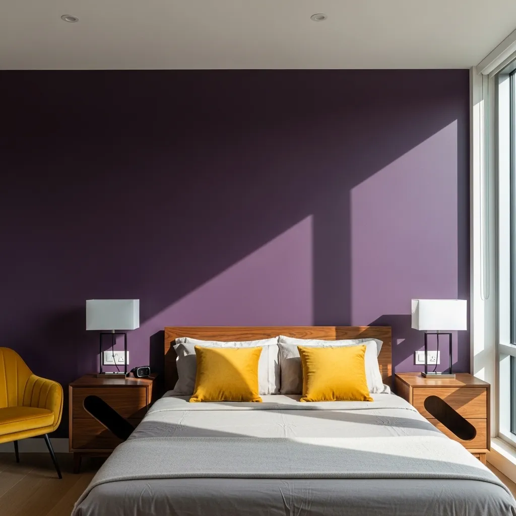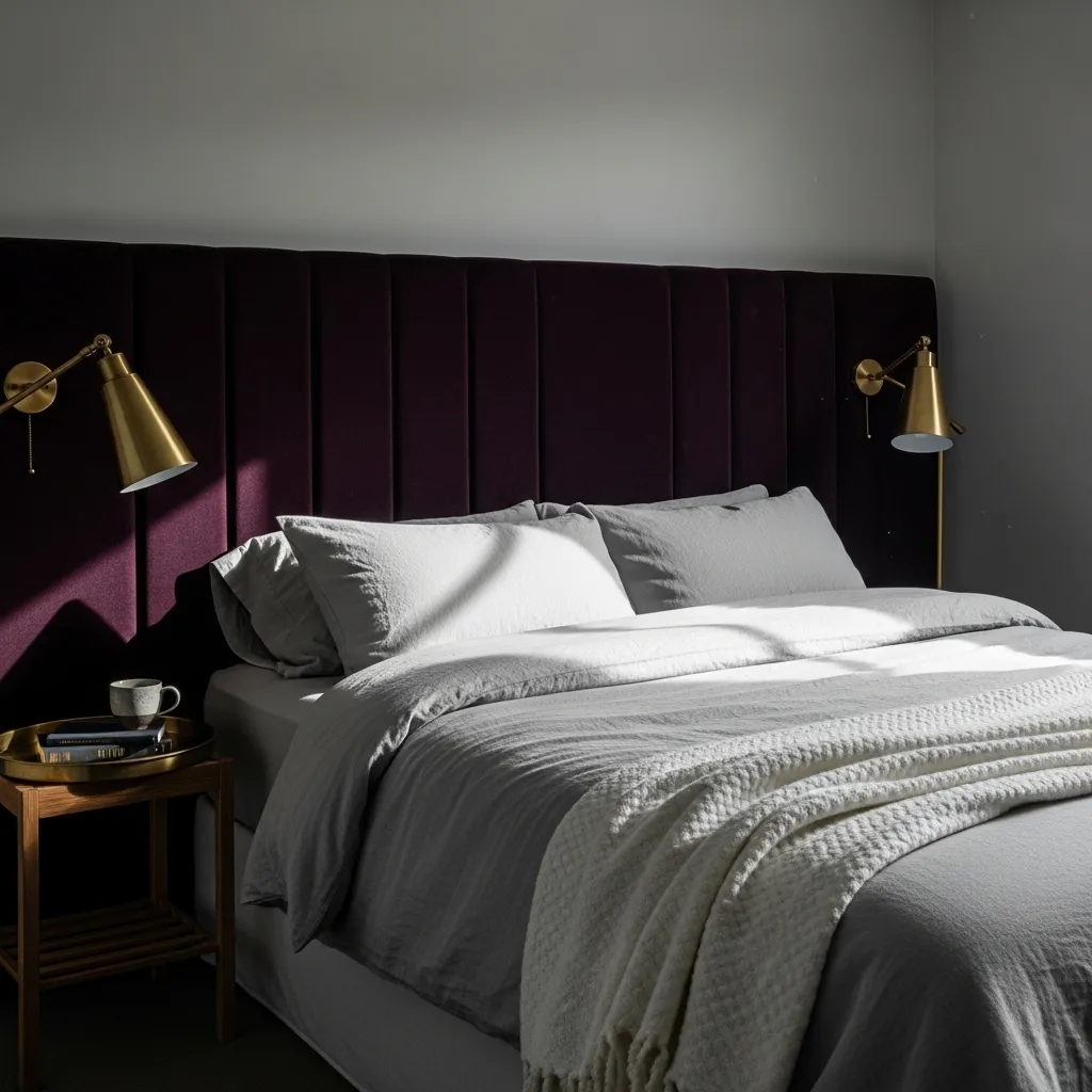 Go bold with a deep plum or eggplant accent wall behind your bed. It instantly creates a cocooning, dramatic focal point that feels both cozy and sophisticated.