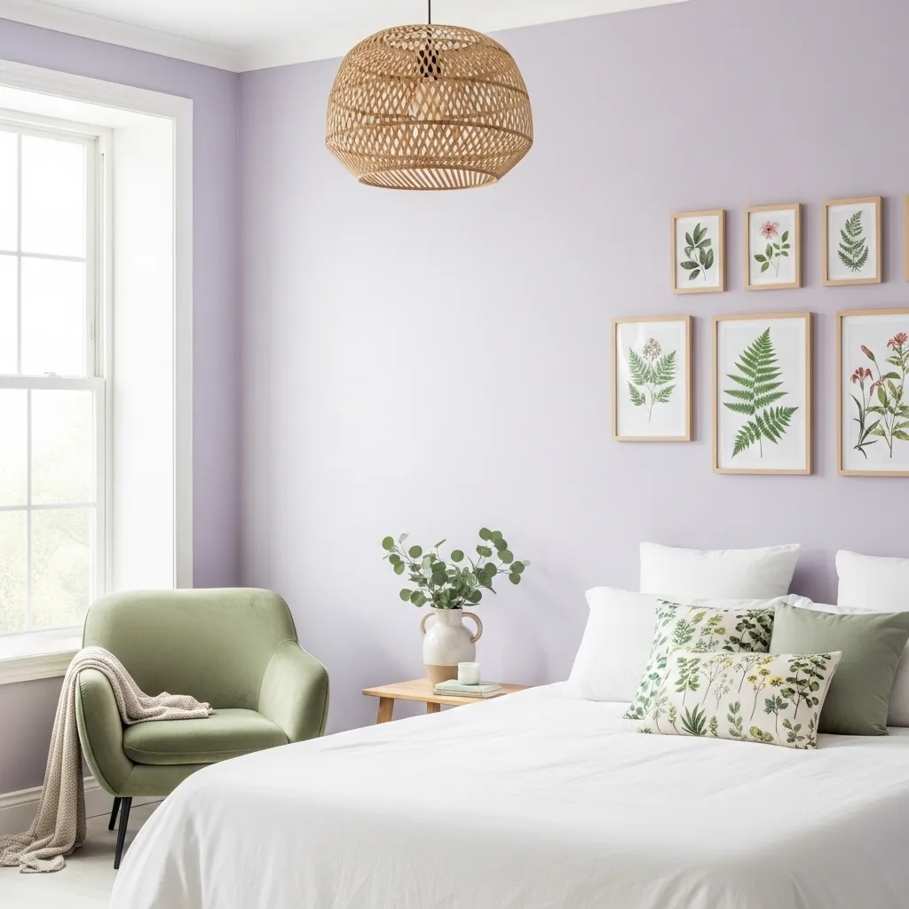 A: Stick to lighter, airier shades like lilac, lavender, or a very pale mauve. They reflect light and make the space feel more open. Use deeper purples as small accents.