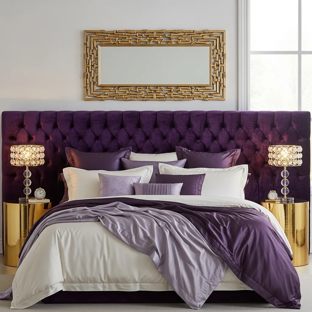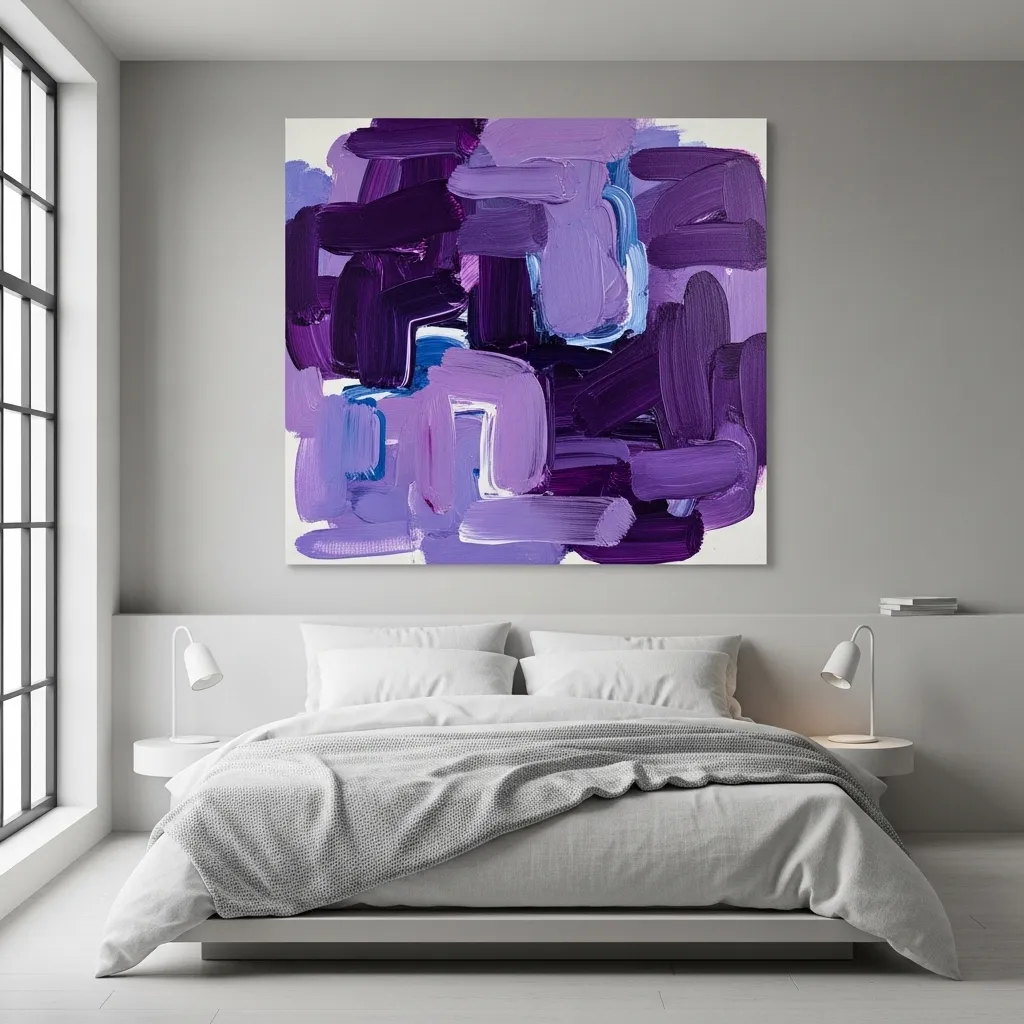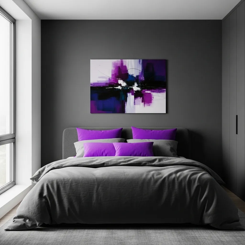 Then, add vibrant purple accents. A single piece of abstract art, a bold violet throw blanket, or a cluster of purple glass vases on the dresser. The pop of color becomes the star.