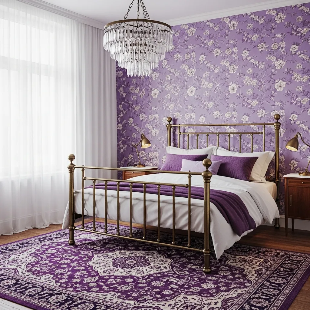 Channel a romantic, bygone era with vintage-inspired purple. Look for a wrought-iron bed frame and paint it a soft violet. Use a floral wallpaper with lilac blooms.