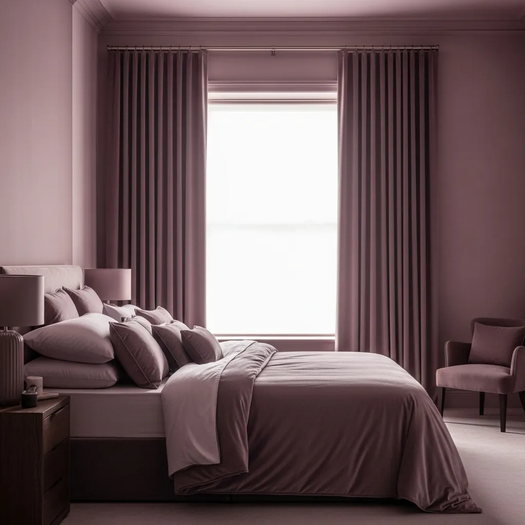 Stick to a single, sophisticated shade of dusty mauve or dusky purple. Use it on the walls, in the bedding, and even in a plush area rug.