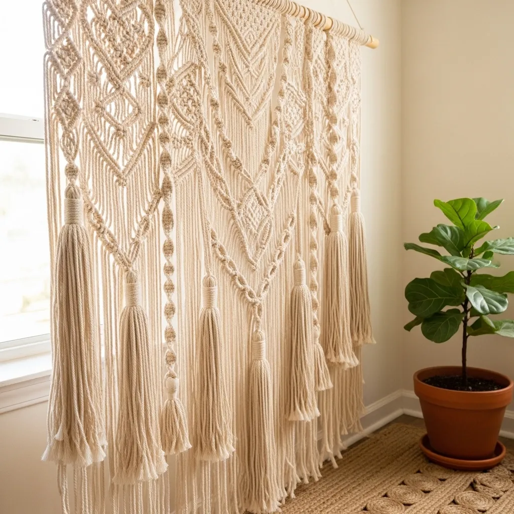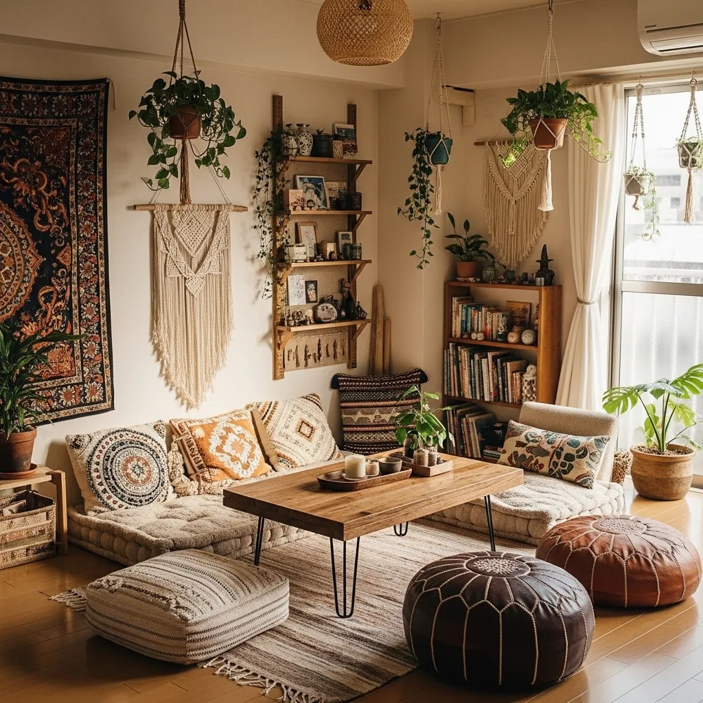 Macramé is a boho staple for good reason—it adds soft texture without taking up any floor space. I love using a large macramé wall hanging as a focal point above my sofa or bed. Smaller pieces, like plant hangers or shelf decor, are perfect for adding those handmade, artisanal touches that make a space feel uniquely yours.